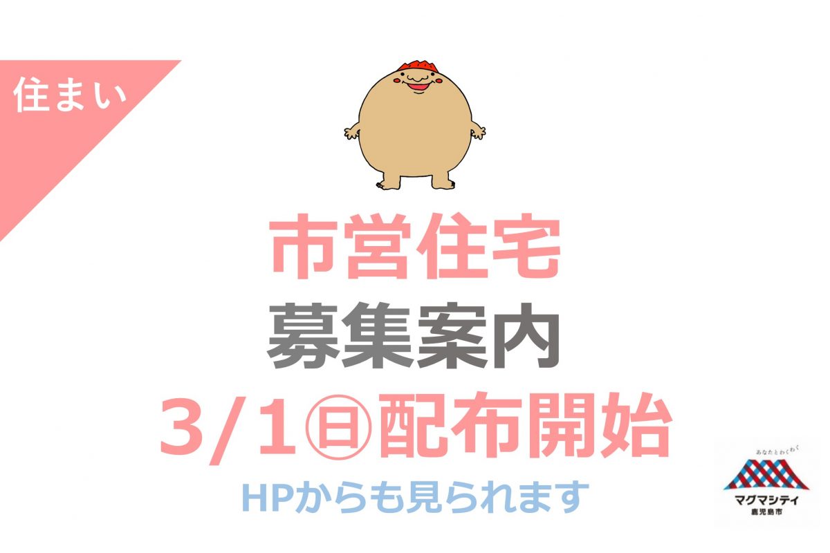 鹿児島市営住宅は、6月、9月、12月、3月の年4回募集を行っています。